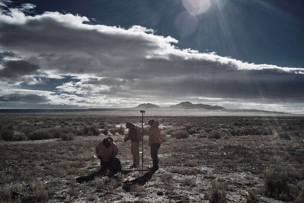 Figure 17. USUAS archaeologists mapping and recording artifacts at Terrace. Photo by Chris Dunker. November 2015.