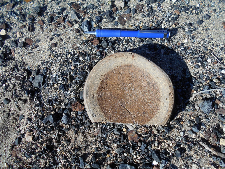 Figure 27. Large brown glazeware vessel bottom at Brown’s Section Station (Toy), Nevada. Photograph by M. Polk 2015.