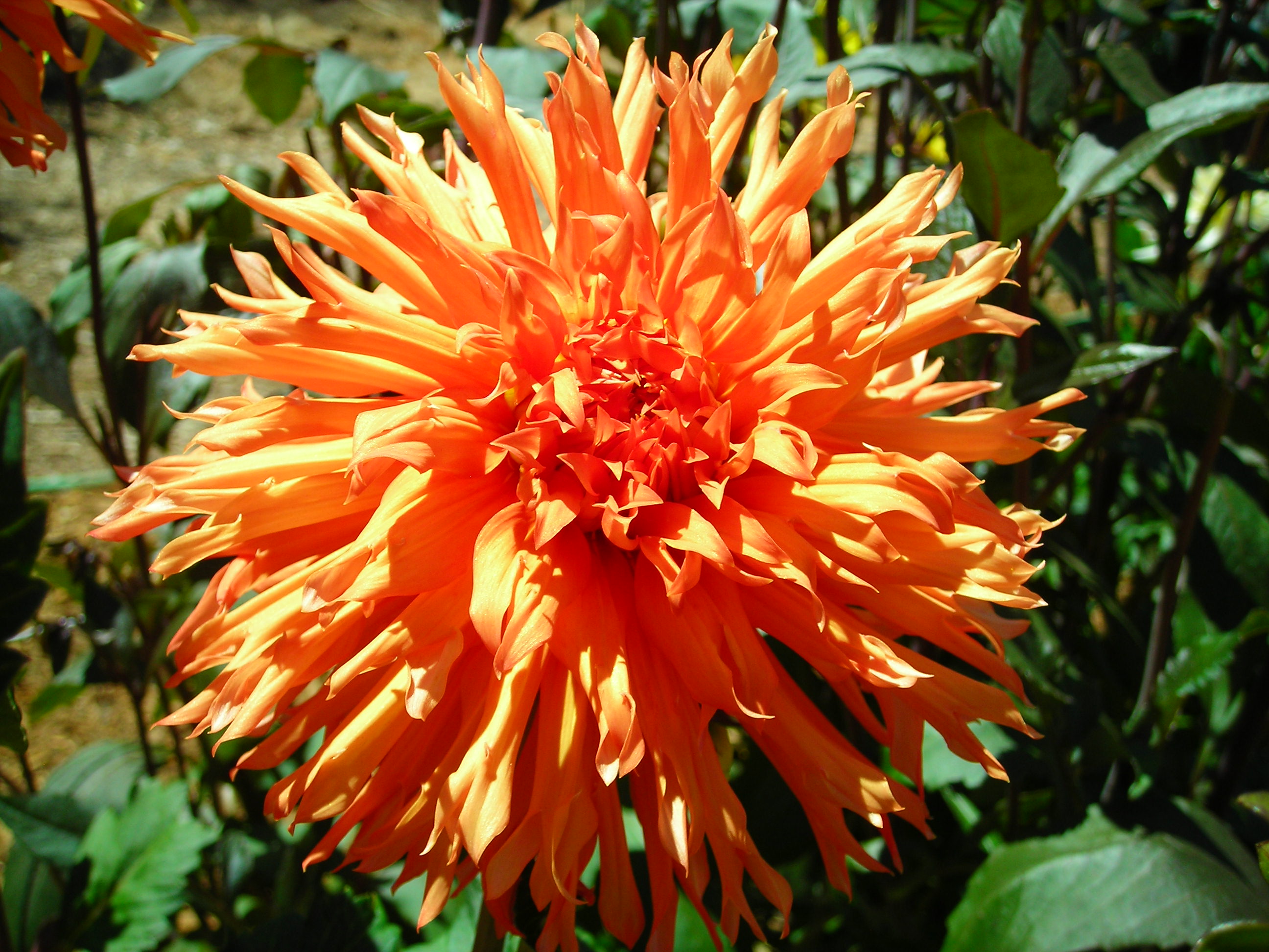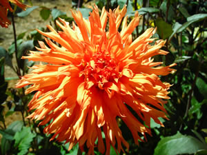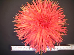This cultivar is laciniated cactus type, orange in color, and of size B. It was registered in 1993 by Almand of Almand Dahlia Gardens, Bayside, California.