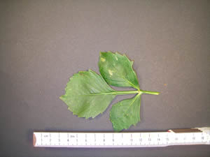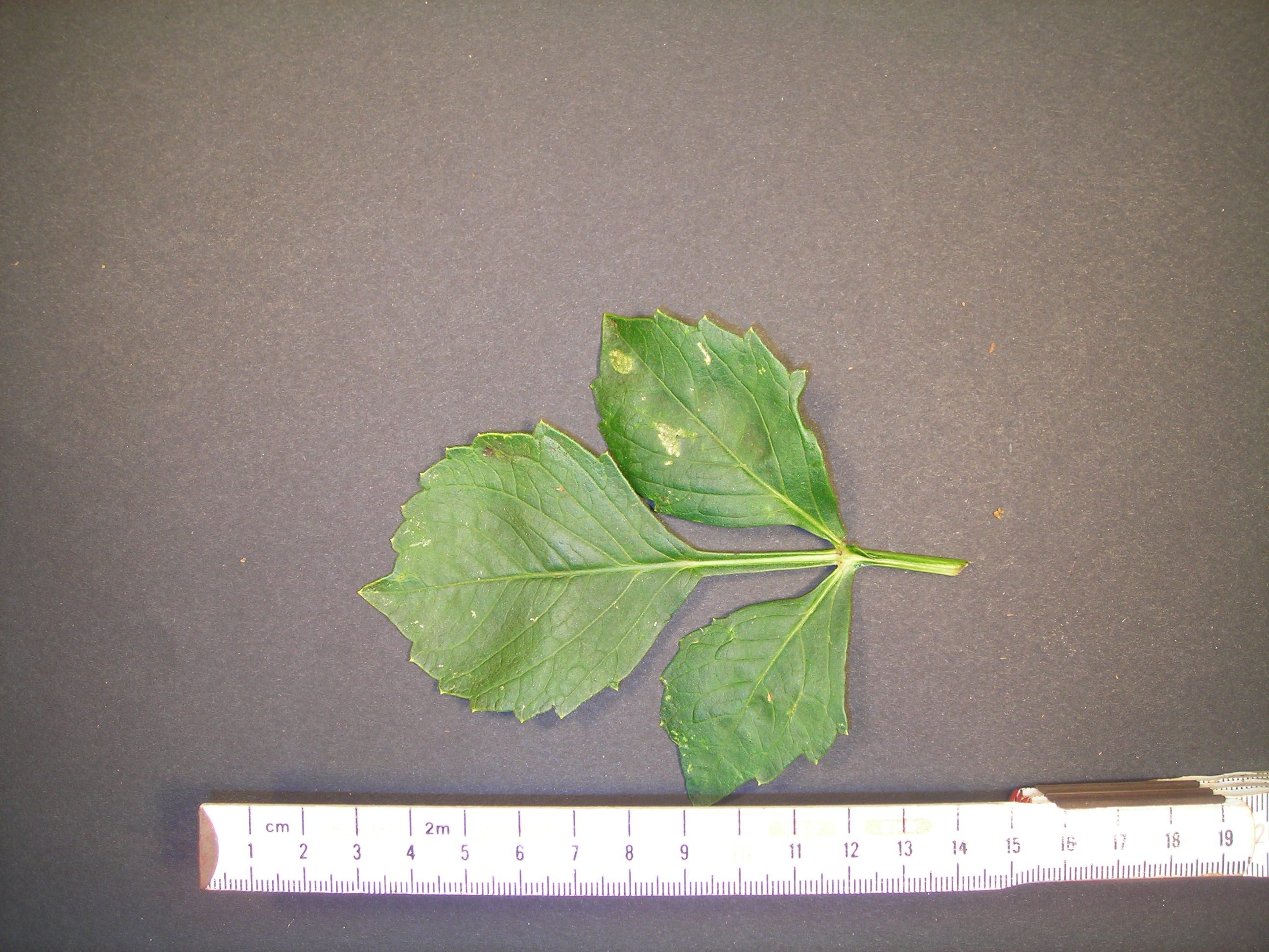 leaves dentate with acute teeth, 3-5 leaflets; stems green, anthocyanin light dependent