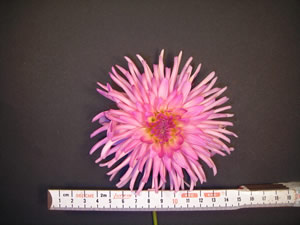This cultivar is cactus type, lavender in color, and of size B. It was registered in 2002 by Larkin and Zydner of Corralitos Gardens, Corralitos, California.