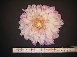 This cultivar is informal decorative type, light blend in color, and of size A. It was registered in 1994 by D. Jack of Ferncliff Gardens, British Columbia, Canada.