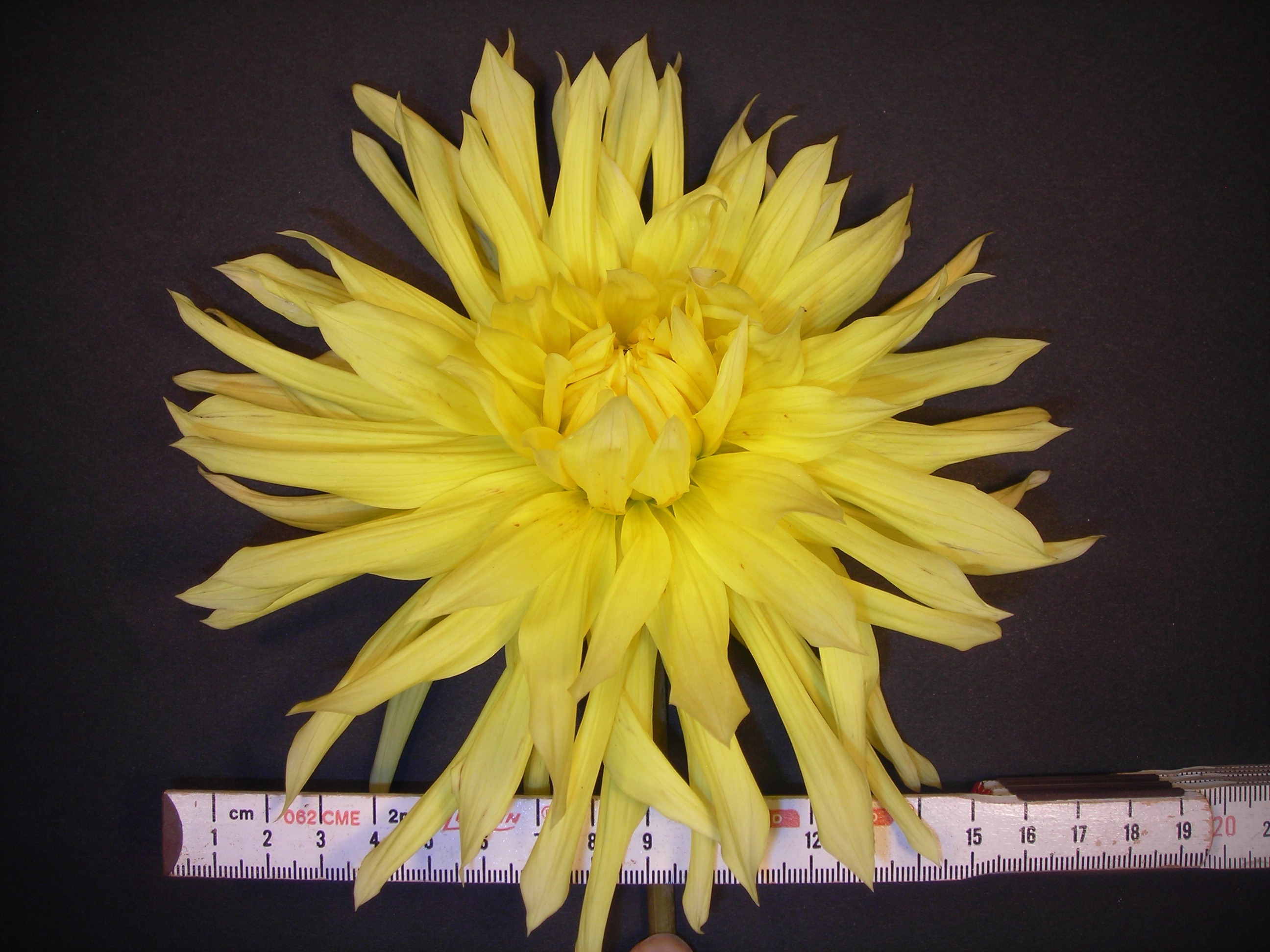 This cultivar is semi-cactus type, yellow in color, and of size AA. It was registered in 1993 by Anselmo, Spokane, Washington USA.