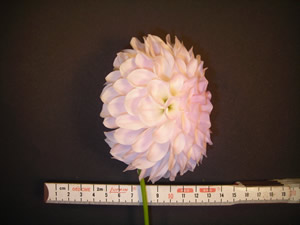 This cultivar is formal decorative type, white in color, and of size BB. It was registered in 2000 by B. Wilson.
