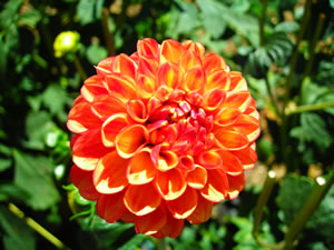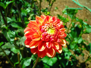 This seedling is formal decorative type, flame blend in color, and size B. It has not been registered, but was hybridized in 2006 by Kevin Larkin of Corralitos Gardens, Corralitos, California.