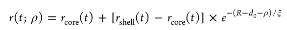 The time-dependent dynamical observables D(t; R) (e.g., r(t; R) and CLS(Tw; R)) measured are spatially averaged over the pore interior and in the measurement, the contributing D(t; ρ) at different distances ρ from the pore center are weighted by the probability distribution f(ρ) of SeCN- present. This is accounted for when fitting the measured dynamics: