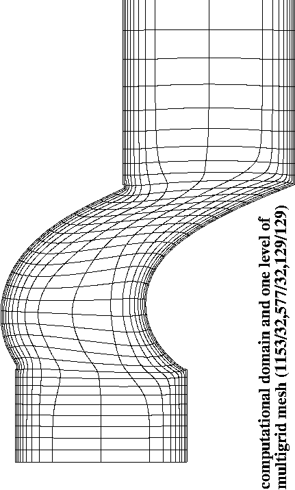 simulation domain and one level of multigrid mesh, obtained by coarsening the original grid (1153/32,577/32,129/129)