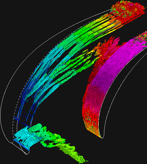 negative lambda_2 surfaces, color is velocity
