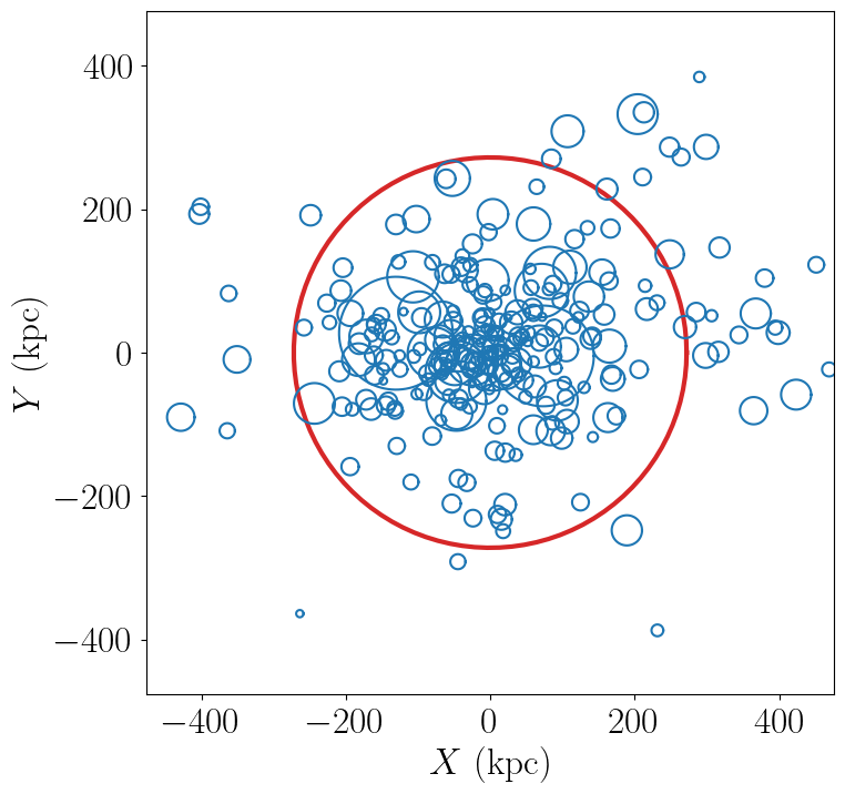We’ll use a utility function, symlib.plot_circle() to make circles that will represent each halo.