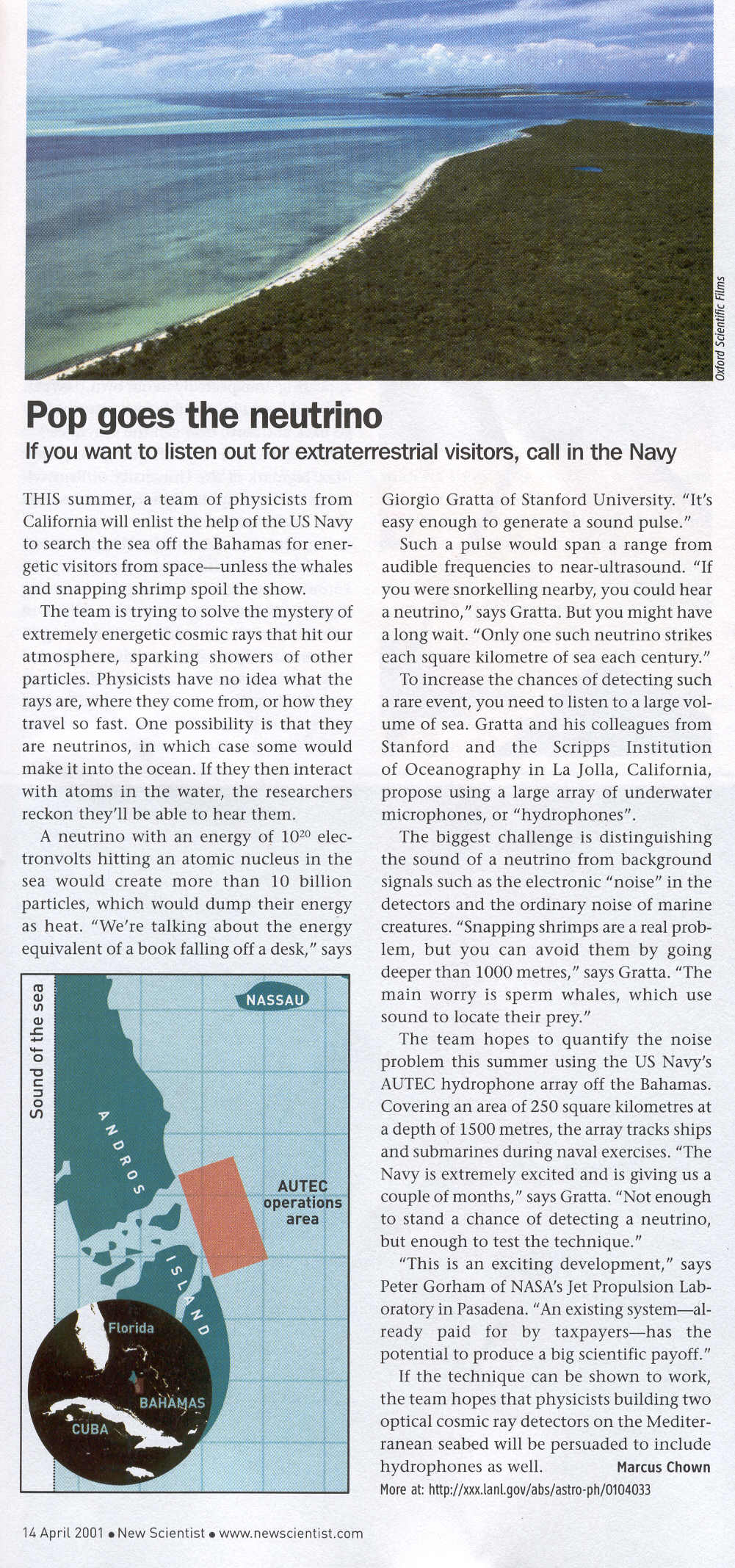 an underwater hydrophone array. It will complement in the high-energy