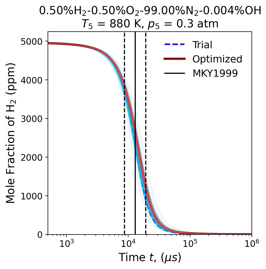 - Mixture Composition, $X$: 0.50% H2-0.50% O2-99.00% N2