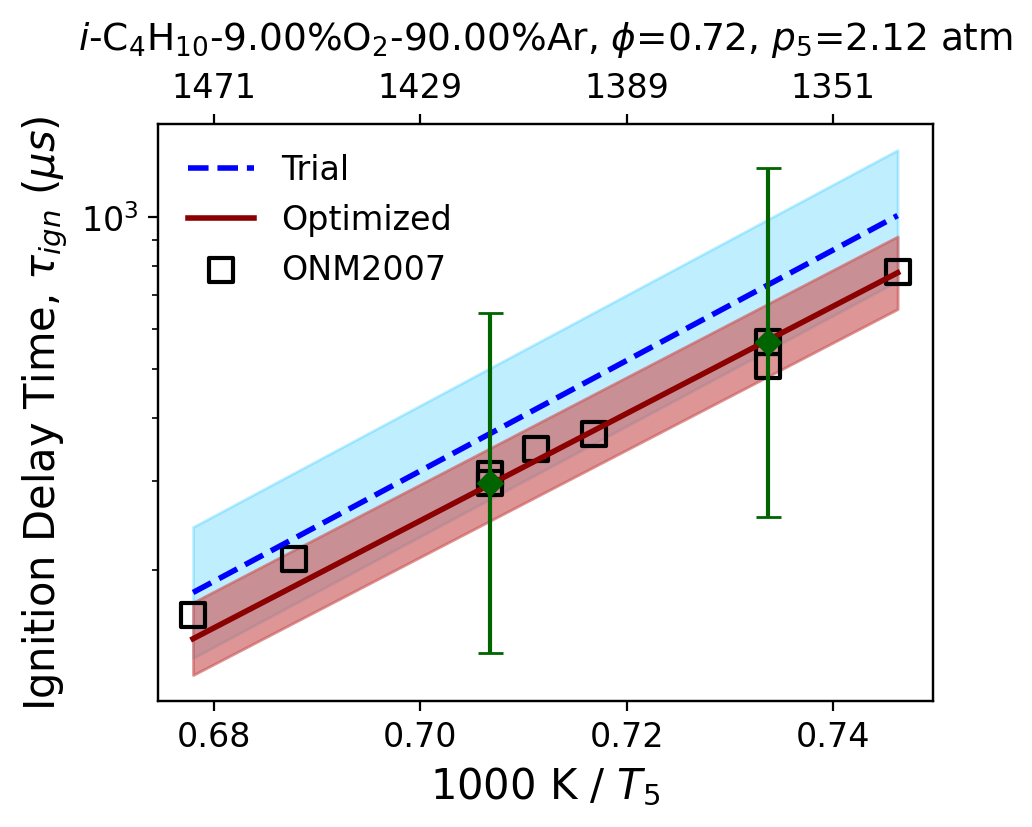 - Mixture Composition, $X$: 1.00% IC4H10-9.00% O2-90.00% AR