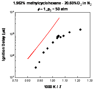 Symbols: Data from J. Vanderover, M. A. Oehlschlaeger, “Ignition Time