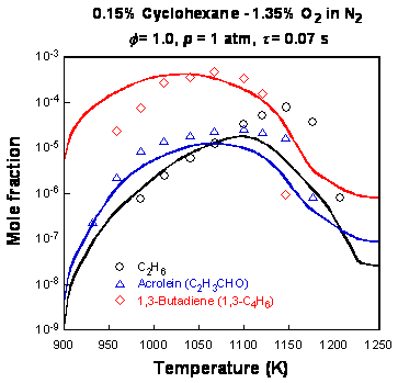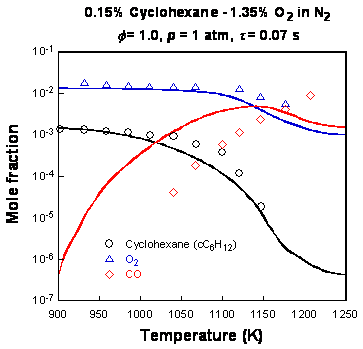 of the Combustion Institute 28 (2000) 1631–1638. Lines: JetSurF v1.1 predictions |