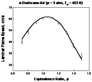 Data taken from X.Q. You, F.N. Egolfopoulos, H. Wang, “Detailed and Simplified Kinetic Models of n-Dodecane Oxidation: The Role of Fuel Cracking in Aliphatic Hydrocarbon Combustion,” Proc. Combust. Inst. doi:10.1016/j.proci.2008.06.041 (2009).
