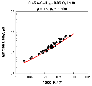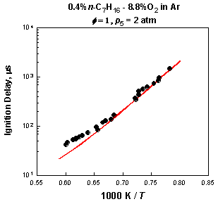 Onset of OH emission. Lines: JetSurF v0.2 predictions