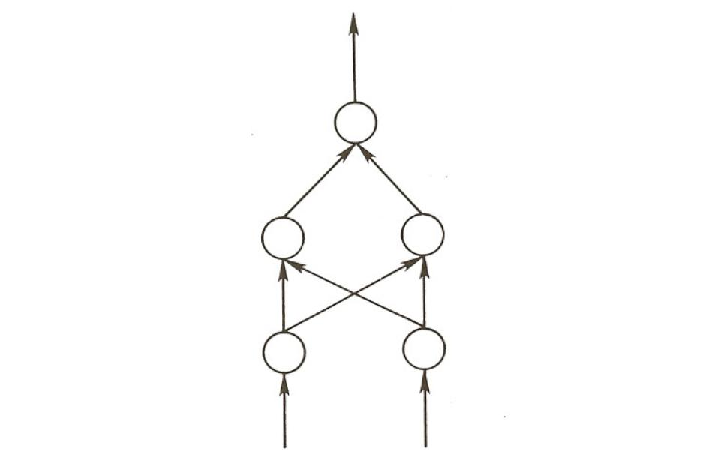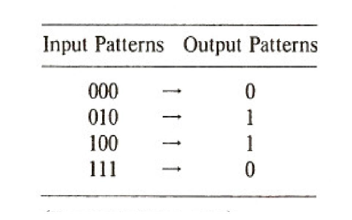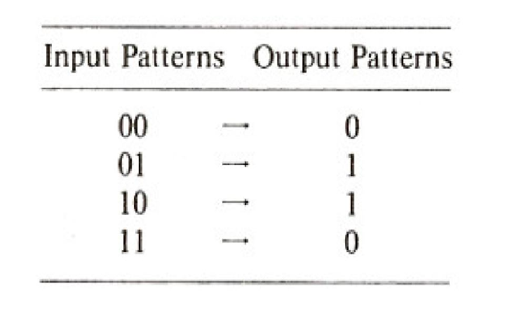 Hint. The question above may seem hard at first, but should become easier as you consider each case. In Excercise 5.1, one hidden unit comes on when either input unit is on (i.e., it acts as an OR unit), and the other comes on when both input units are on (i.e., it acts as an AND unit). For this exercise, we are looking for qualitatively different solutions. You might find that one hidden unit comes on when the first input unit is on and the second is off (This could be called ‘A and not B’), and the other comes on when the first is on and the second is off (‘B and not A’). The weights from the hidden units to the output unit will be different from what they were in Exercise 5.1, reflecting a difference in the way the predicates computed by each hidden unit are combined to solve the XOR problem. In each case you should be able to describe the way the problem is being solved using logical expressions. Use A for input unit 1, B for input unit 2, and express the whole operation as a compound logical statement, using the additional logical terms ’AND’ ’OR’ and ’NOT’. Use square brackets around the expression computed by each hidden unit, then use logical terms to express how the predicates computed by each hidden unit are combined. For example, for the case in Exercise 5.1, we would write: [A OR B] AND NOT [A AND B].
