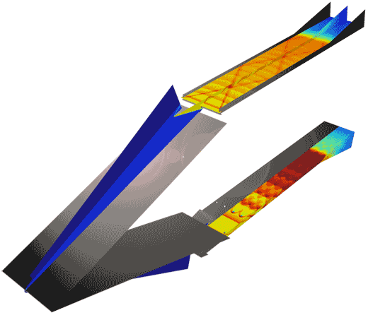 Since we are interested in predictive simulations of the unstart phenomenon caused by thermal choking, the heat release model is central to our overall objectives. The heat release modeling group is focusing on the development of heat release models for supersonic combustion to be used in both low and high fidelity simulations. We are also interested in identifying and characterizing all uncertainties associated with the combustion process. The group effort relies on a close interaction between experimental and numerical work. In particular, two in-house experiments directly support the modeling effort, i.e., a mixing and combustion of a jet in supersonic cross-flow experiment and shock tube experiments to characterize the different reaction rates and their uncertainties. |
