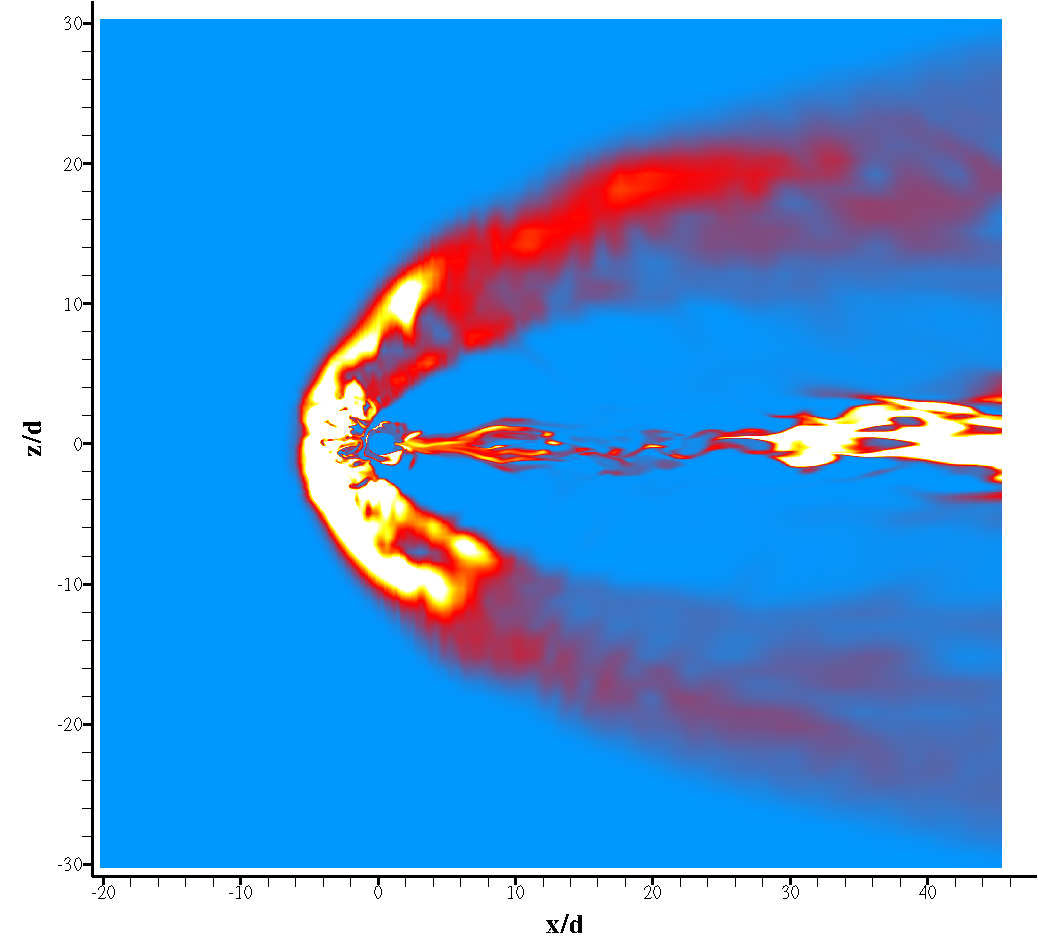 | Simulation of a hydrogen jet in a supersonic cross-flow are performed with both LES and RANS and are compared with experimental data. |