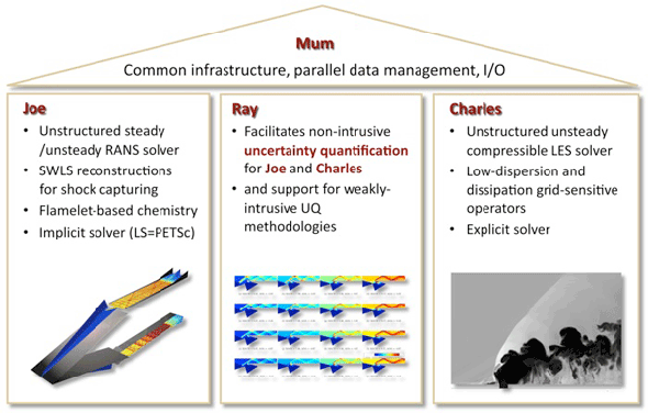 A new computational infrastructure has been developed to support the multi-physics and multi-fidelity simulation requirements of Stanford's PSAAP center. The infrastructure includes 3 key components: