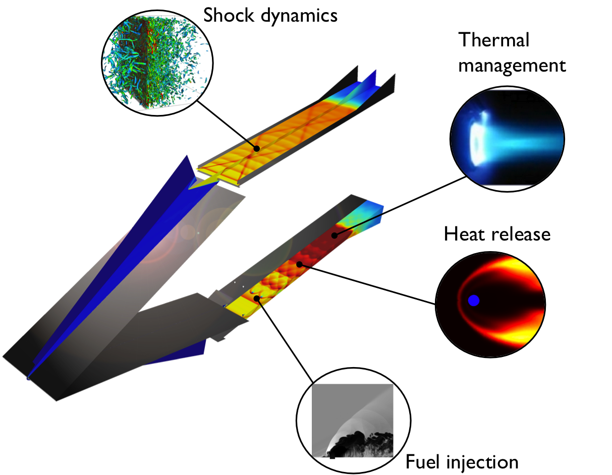 | Hypersonic flight is intrinsically a multi-physics, multi-scale complex system where elements such as fluid dynamics, gasdynamics, turbulence, transport, chemistry, heat transfer and their interaction play a significant role. However, taking advantage of the hierarchical nature of this system, we are able to identify and decompose the full system into its unit components. This enables us to investigate in details, both numerically and experimentally, simpler unit-problem systems, advance their understanding, construct and validate physics-based models that accurately describe and predict them. All these activities are developed within a UQ framework that enables us to integrate and relate individual efforts.