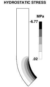 Prior in vitro studies have shown that a region of fibrocartilage develops in certain tendons which wrap around bones. This fibrocartilage goes away when the tendon is removed from the channel which guides it over the bone and returns when the tendon is replaced. Using finite element analysis, we mechanically modeled this situation and found that intermittent in vivo loads create a pattern of hydrostatic stress in the tendon tissue which matches the pattern of fibrocartilage development in these tendons (Figure 2). These results supported our mechanically-based tissue differentiation concepts. (J Orthop Res 11:581-591, 1993)