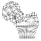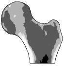 Approach - The first step is to develop a finite element mesh with the external geometry of the bone (Figure 1). Then the density distribution (Figure 2) is mapped into the model. Numerous plausible loads are selected, based on our knowledge of anatomy and joint kinematics, and the complete normalized stress distribution is calculated for each. Final selected loads will be a combination of these normalized loads.