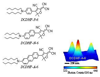 Adding rigid acene rings to the conjugated linker dramatically red-shifts the absorbance and emission as well as maintains the environment sensitivity and enhanced solvatochromism of the original DCDHF-P-6. These new fluorophores are applicable in the cell.