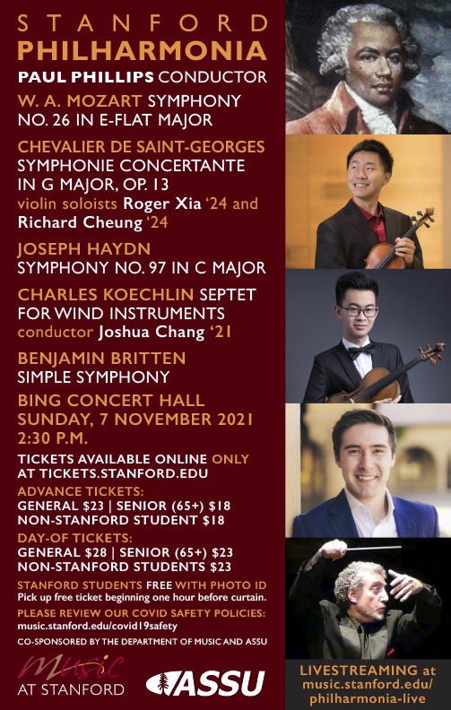 Sunday, 7 November 2021 · 2:30 pm · Bing Concert Hall · Tickets