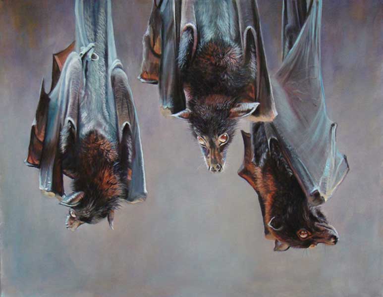 Fruit bats, like the Large Flying-fox (Pteropus vampyrus), play an important role in forest regeneration. They typically roost in large stationary colonies during the day, but move their night-time feeding grounds throughout the year, following the ripening of fruits. Most Old World fruit bats crush ripe fruits inside their mouths, swallowing the juice and spitting out a “pellet” of pulp. In this way, they are crucial for the dispersal of many tropical fruits, including ones that we, too, enjoy, like figs and mangoes. This particular bat species ranges from Thailand through the Philippines and most of Indonesia. While it is still common and widespread, its numbers have declined significantly (by around 25 percent) over the last decade, with especially large losses in peninsular Malaysia. In 2008, the IUCN listed the Large Flying-fox as “near threatened.” In many parts of its range, pressure from hunting for food apparently represents the main cause of this decline, showing these bats not resilient enough for current harvesting practices. Temporary hunting bans may be the best answer in some regions, along with the protection of important roosting sites.