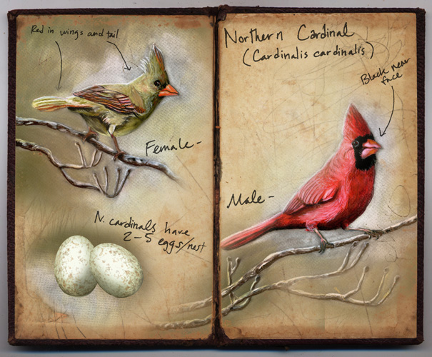 The Northern Cardinal is a widely recognized sexually dimorphic bird species with brilliant red males. The color of males is attractive not only to birdwatchers, but also to the comparatively plain female cardinals. According to a study by Wolfenbarger (1998), more chromatic males perform better competing for mates. Redder males also control more advantageous breeding territory and gain access to the season's earliest breeding females. By outcompeting their less colorful rivals, males pass on genes for brighter color, perpetuating the characteristic cardinal red.