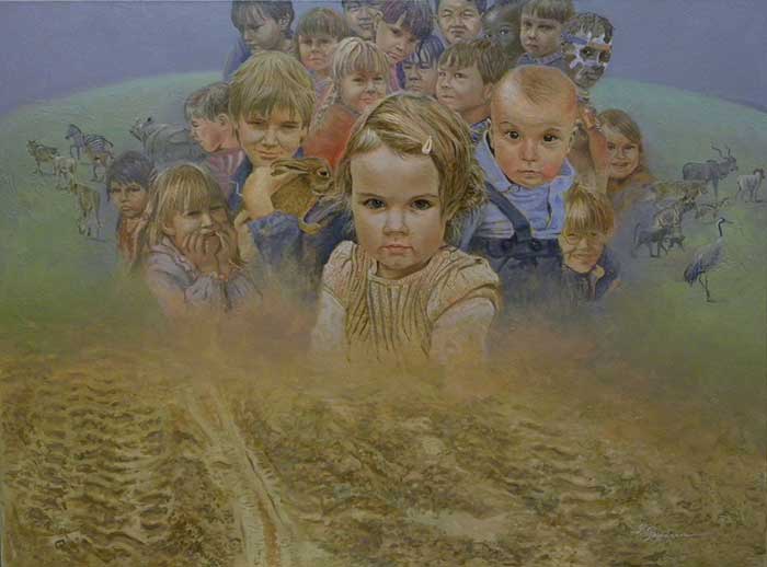 Die Sünden ihrer Väter (Sins of Her Fathers) Bernd Pöppelmann (35 x 47”, oil on linen) The rollover shows a detail.