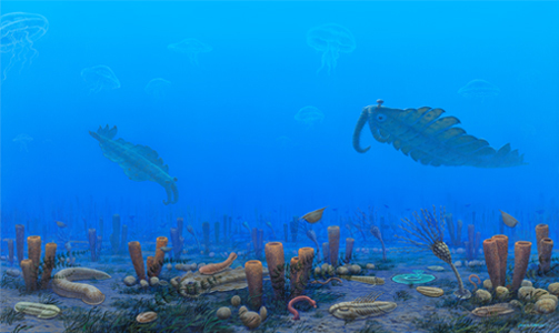 The Spence Shale of Utah represents a window into the time of the “Cambrian explosion” when evolution got into full swing, and many new phyla and families appeared in the fossil record. The Spence Shale represents a slightly earlier time than the Burgess Shale, famous for its preservation of soft parts. The Spence records many nice hard parts, and we see a proliferation of trilobites and other arthropods. Also recorded are the shells of primitive mollusks, brachiopods and echinoderms, groups which become much more diverse in the Ordovician. In fact, every phylum visible in the middle Cambrian became much more diverse by the Ordovician Period.