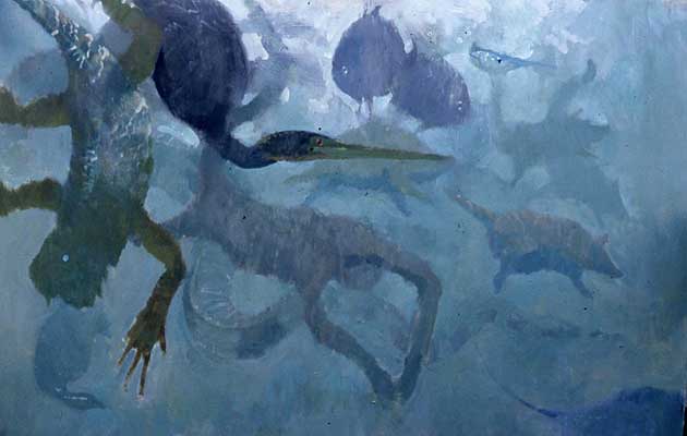 Caribbean coast of Central America. Diaspora is a kind of thought experiment where I imagine all of these creatures underwater--for some a more or less normal reality for others a radically altered reality. There is that unique moment of confusion, disorientation, and opportunity--some will persist, some will adapt and survive, some will perish.