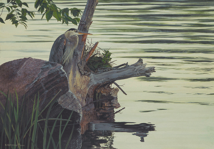 For the most part, modern birds bear little physical resemblance to the dinosaurs from which they evolved. An exception to this rule is the ancient heron family. Fossils attributable to the genus Ardea go back as far as the upper Miocene, about seven million years ago, and it's likely that the family arose in the Paleocene, 55-65 million years ago. The Cretaceous Gallornis, which is thought to be the closest known relative to the common ancestor of all living birds, probably looked a lot like a Great Blue Heron. When watching a heron stalk its prey, it's easy to visualize its relationship to the coelurosaurian theropod dinosaurs that are thought to have given rise to all modern birds.