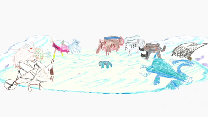 This animation is part of a project where I simulated evolution with a group of kids for an hour, getting around 100 or so creatures and then animating it, setting it to music and sprinkling their “animal noises” throughout. I hoped that they could learn evolution by “living it” in a fun, nontraditional way, and that I might perhaps inspire a future scientist (or artist!) to follow their passion later in life by creating a memorable experience.