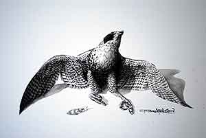![]() Stargazing--Peregrine Falcon, ink wash of a poisoned Peregrine Falcon by Carel Brest van Kempen |