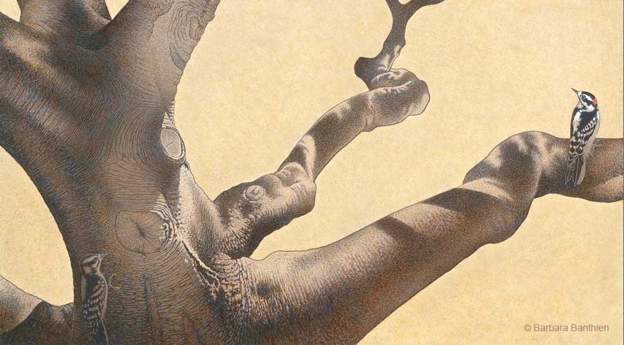 Old Oak with Downy Woodpeckers |