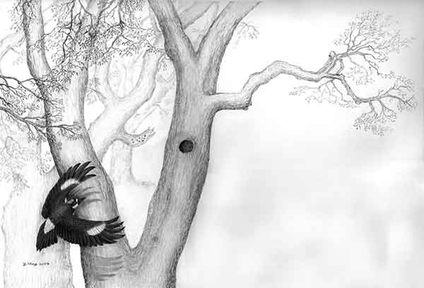Artists's comment: "This drawing was produced as the Frontisepiece for the Breeding Bird Atlas of Santa Clara County, CA .