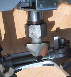 - Using a 45 degree bevel router bit, rout the outside edge to the outside line. This is the first step in getting a curved lip on the barrel so the skin will slide smoothly over it.