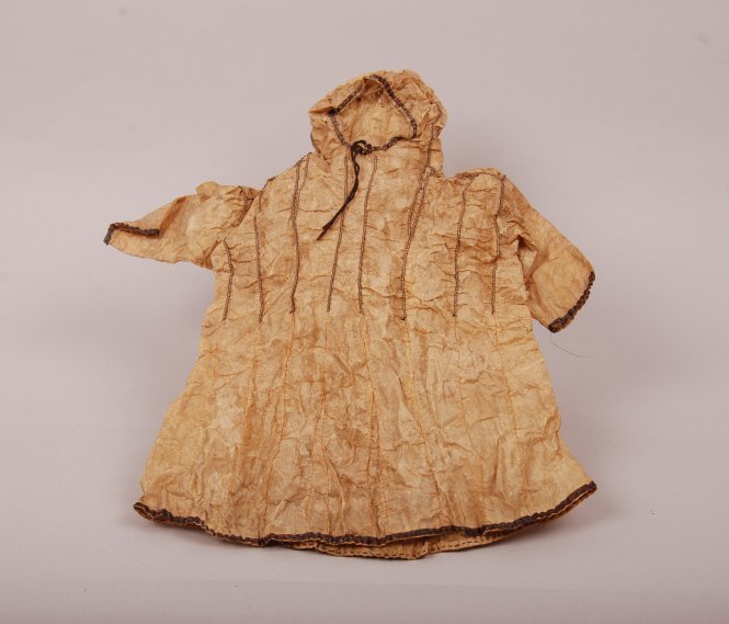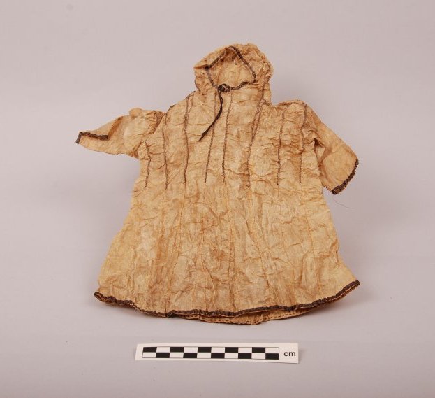 This is the tale of an inventory reunion that wasn't. First: a miniature hand–sewn gut skin parka with finely crafted details like a drawstring hood and borders on the sleeves and hem (54.223). Second: a hand–sewn soft doll of hide stuffed with cotton batting (71.51). His focused expression is wrought in colored cotton thread, and he wears gut skin pants, tunic, and hat with colored seam detailing. A blue cotton neckerchief and finely woven belt complete the ensemble. We were very excited when we discovered an old inventory photo of the doll wearing the parka–a seemingly perfect fit! Seeing this image, we–like whoever took the photo–believed the two items must have been separated at some point after 1954 and that the doll received a "found in collection" number in 1971. Except we were wrong. Museum records are clear that these two great items, that go great together, are not related. The tiny parka was made by an Inupiaq or Yup'ik woman in Golovin, Alaska. Mrs. George Bunker collected it, and her daughter, Mrs. Henry Boos, donated it to Stanford in 1954 as part of a larger collection. The doll has a different provenance. It was made ca. 1898. And it wasn't found in collections in 1971. It was donated by Mrs. Albert Feldhym. Like the parka, it is from the American Arctic, but that region stretches beyond Golovin Bay and across the continent. Is there any way they are related after all? We'd need a lot more information to be sure. These objects remind us that we need to review all the evidence we can before jumping to museological conclusions.
