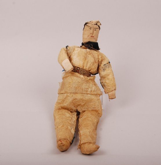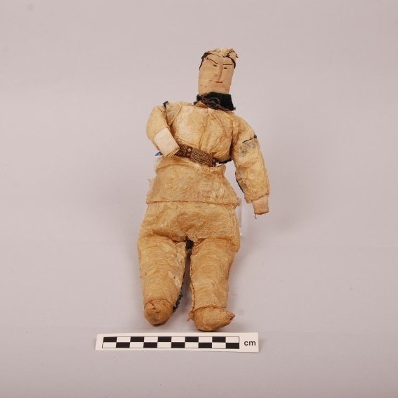 This is the tale of an inventory reunion that wasn't. First: a miniature hand–sewn gut skin parka with finely crafted details like a drawstring hood and borders on the sleeves and hem (54.223). Second: a hand–sewn soft doll of hide stuffed with cotton batting (71.51). His focused expression is wrought in colored cotton thread, and he wears gut skin pants, tunic, and hat with colored seam detailing. A blue cotton neckerchief and finely woven belt complete the ensemble. We were very excited when we discovered an old inventory photo of the doll wearing the parka–a seemingly perfect fit! Seeing this image, we–like whoever took the photo–believed the two items must have been separated at some point after 1954 and that the doll received a "found in collection" number in 1971. Except we were wrong. Museum records are clear that these two great items, that go great together, are not related. The tiny parka was made by an Inupiaq or Yup'ik woman in Golovin, Alaska. Mrs. George Bunker collected it, and her daughter, Mrs. Henry Boos, donated it to Stanford in 1954 as part of a larger collection. The doll has a different provenance. It was made ca. 1898. And it wasn't found in collections in 1971. It was donated by Mrs. Albert Feldhym. Like the parka, it is from the American Arctic, but that region stretches beyond Golovin Bay and across the continent. Is there any way they are related after all? We'd need a lot more information to be sure. These objects remind us that we need to review all the evidence we can before jumping to museological conclusions.