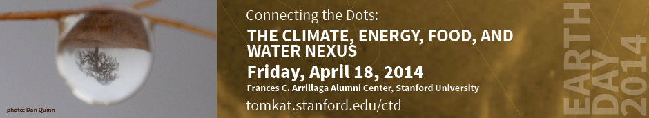 Stanford experts from a range of disciplines will discuss the interconnections and interactions among humanity’s need for and use of climate, energy, food, water, and environmental resources. Featuring key authors of the new Intergovernmental Panel on Climate Change (IPCC) report on impacts, adaptation and vulnerability to climate change.