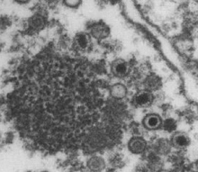 Description: Cercopithecine herpesvirus 1, or B virus, is a neurotropic and neurovirulent herpesvirus of macaque monkeys.(2),(3) However, zoonotic transmission between macaques and humans has been documented in more than two dozen instances. Among all the identified non-human primate herpesviruses, it is the only one that is highly pathogenic.