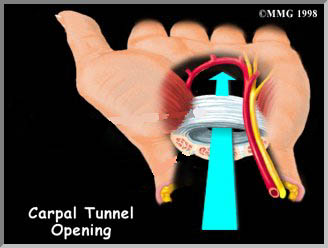 The carpal tunnel is aptly named. It is essentially a tunnel of fixed size through which pass many of the structures travelling to the hand.