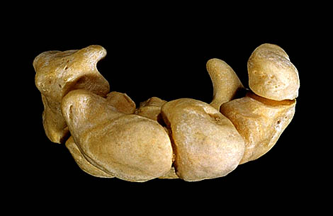 The carpals fit tightly together to form a stable supporting arch. In this image, you see the carpals as they are positioned in your hand were you to hold your left arm out, with your palm up, and look out towards your fingers.