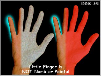 Other nerve disorders can cause tingling in the hands. One of the ways to distinguish CTS from other conditions is by the pattern of pain and numbness in the hand. The median nerve is not the only nerve to innervate the hand, but it is the only nerve to travel through the carpal tunnel. If tingling were due to a generalized nerve disorder, the whole hand would be affected. Remember that the median nerve innervates only the first four fingers. In CTS, the little finger remains tingle-free.