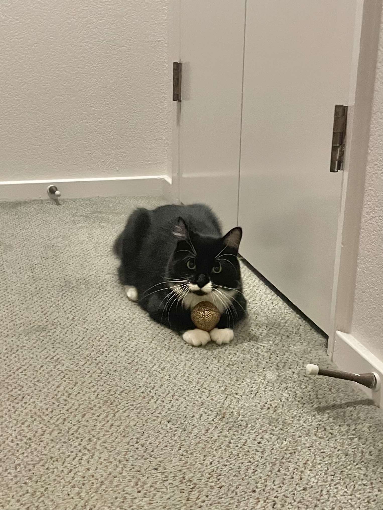 Hobbies include running around, eating plastic, and sleeping on laps.
