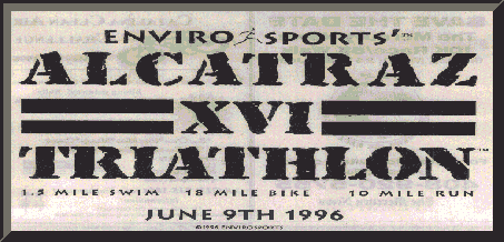 My 1996 Alcatraz Triathlon report developed a life of its own as I wrote it. By the time I finished it consisted of 18 pages of heavy breathing, sweat, and exhaustion. Sounds like a Danielle Steele novel, huh? ;-) Due to the length, I've taken pity upon you poor hapless souls with nothing better to do than to browse the Web looking for juicy things to read and made it available in sections, exactly as it was first "published" in serial form on the Rec.Sport.Triathlon bboard.