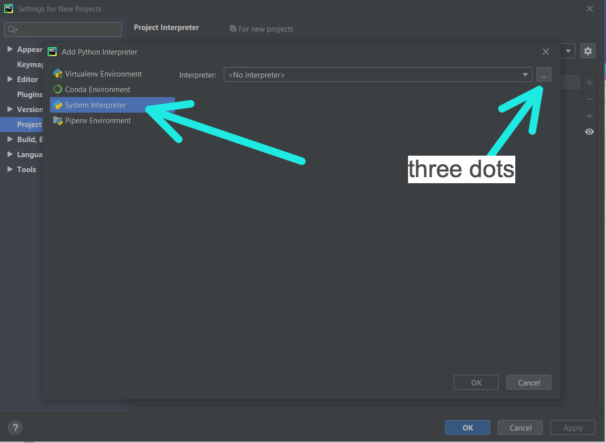 - Click the three dots on the right side of the "Project Interpreter" line: